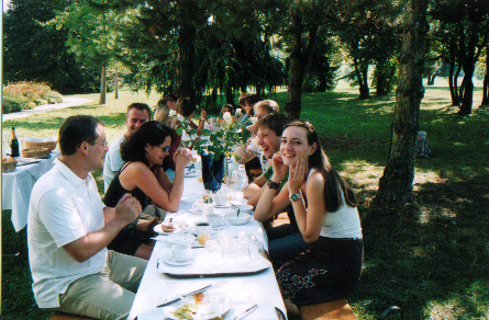 | Frühstück am Morgen danach im Schlosspark | Selbst die nächtlichen Kirchenglocken taten der morgendlichen Stimmung keinen Abbruch | |